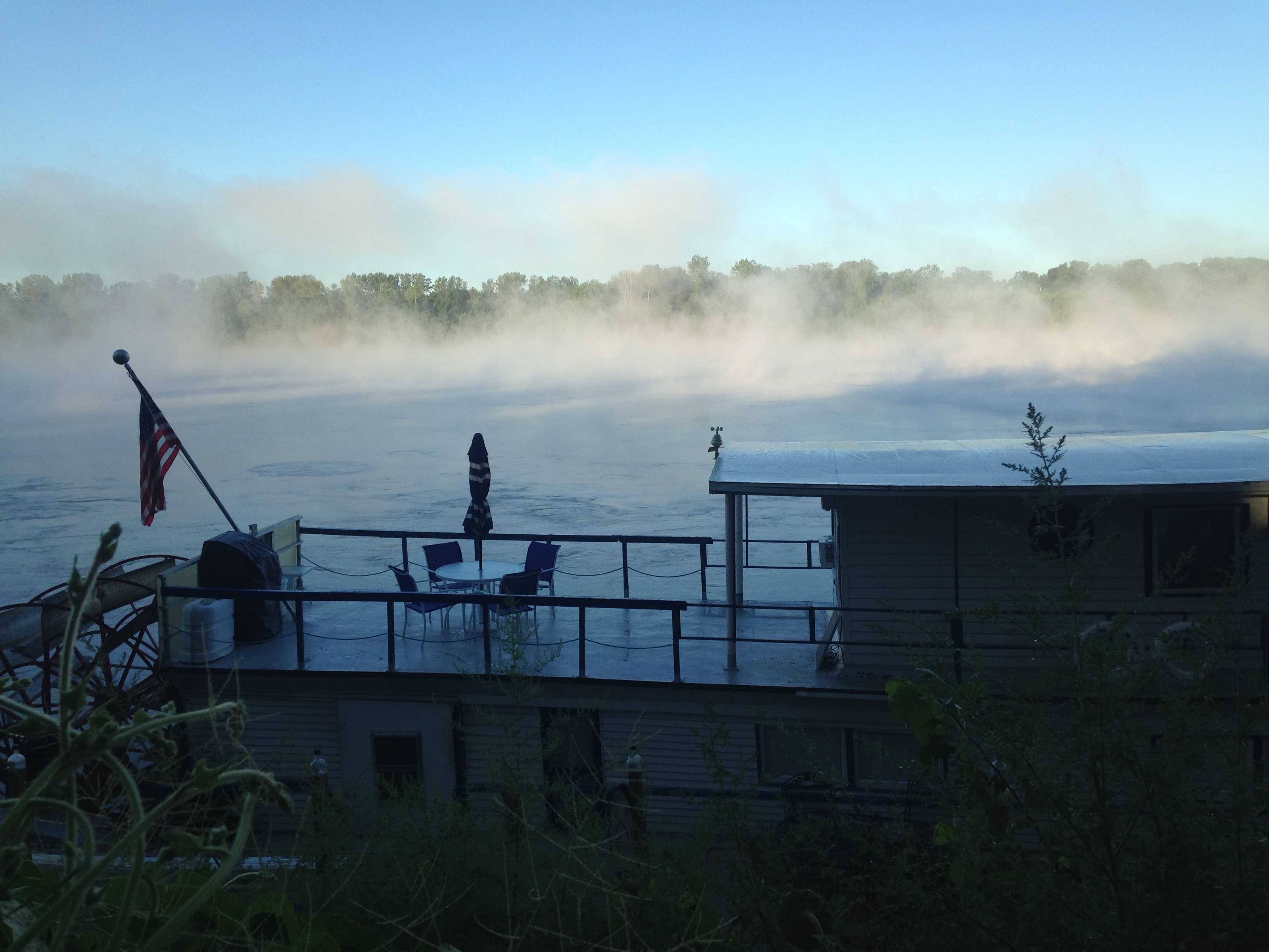 Once we landed in St. Charles Gary and Marsh arrived and we all headed to Big A’s for dinner and a local river special interests meeting.  I was introduced to Michael Clark of Big Muddy Adventures (www.2muddy.com) who offered assistance with navigating through the wildly busy St. Louis port.  He offered to have John and I stay at his place and we transported The Helinda to the safety of his home.  I must say he has one of the coolest places I’ve seen, he lives close to the confluence of the Missouri and Mississipi rivers and his pad is known as “The Canoe House.” We were happy not to have to camp on a train track or in the rain.  I was also relieved that I could tap into Mike’s wealth of knowledge regarding the Mississippi River.  Canoeing through St. Louis is not for the faint of heart, Mike will paddle with me over the Chain of Rocks and then send me on my way through St. Louis.  It should be exciting.