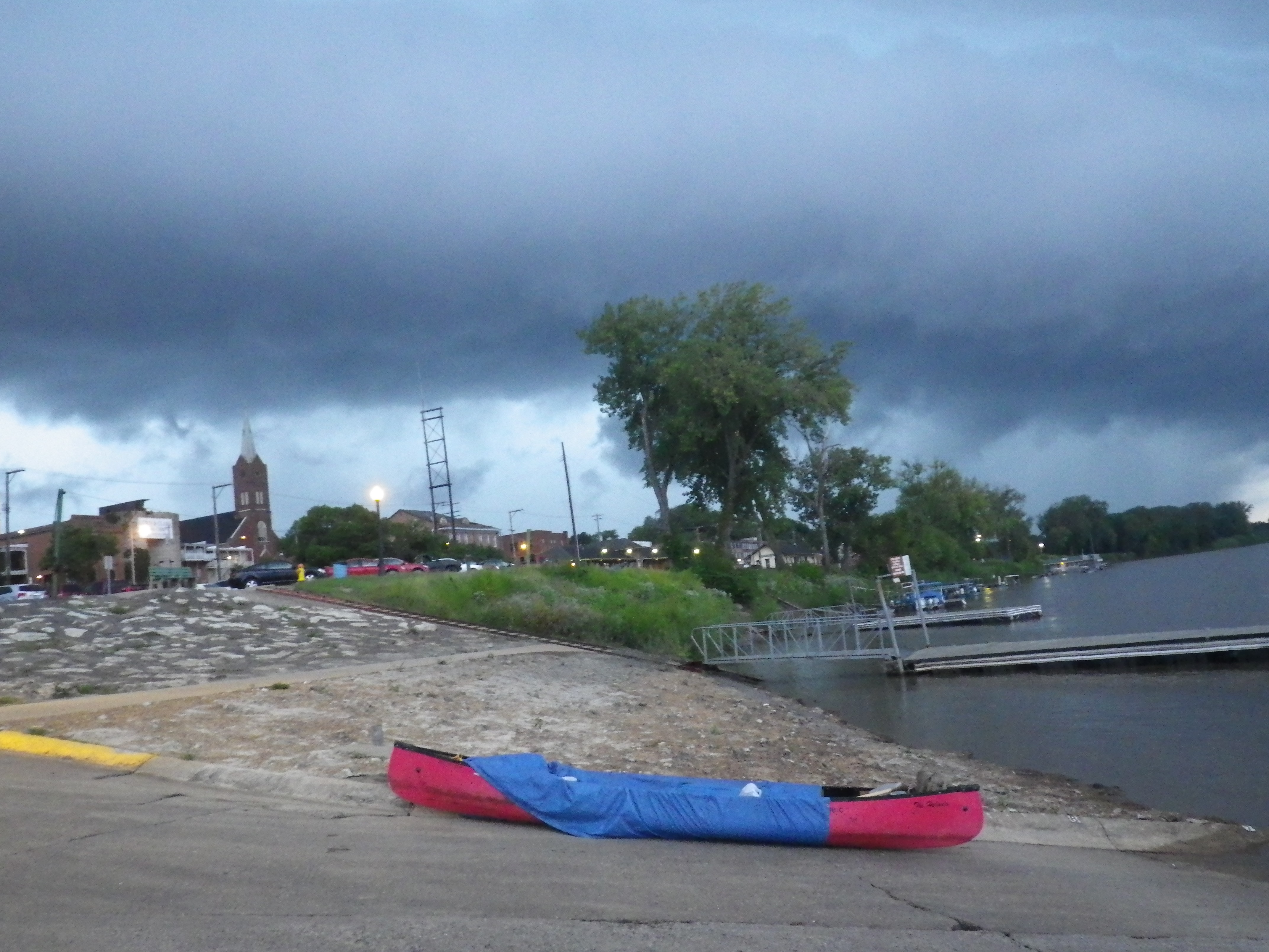 It started to rain around 5:00 and didn’t let up until about 9:00. We waited out the rain and made our launch to St. Charles. We made it. Barely.